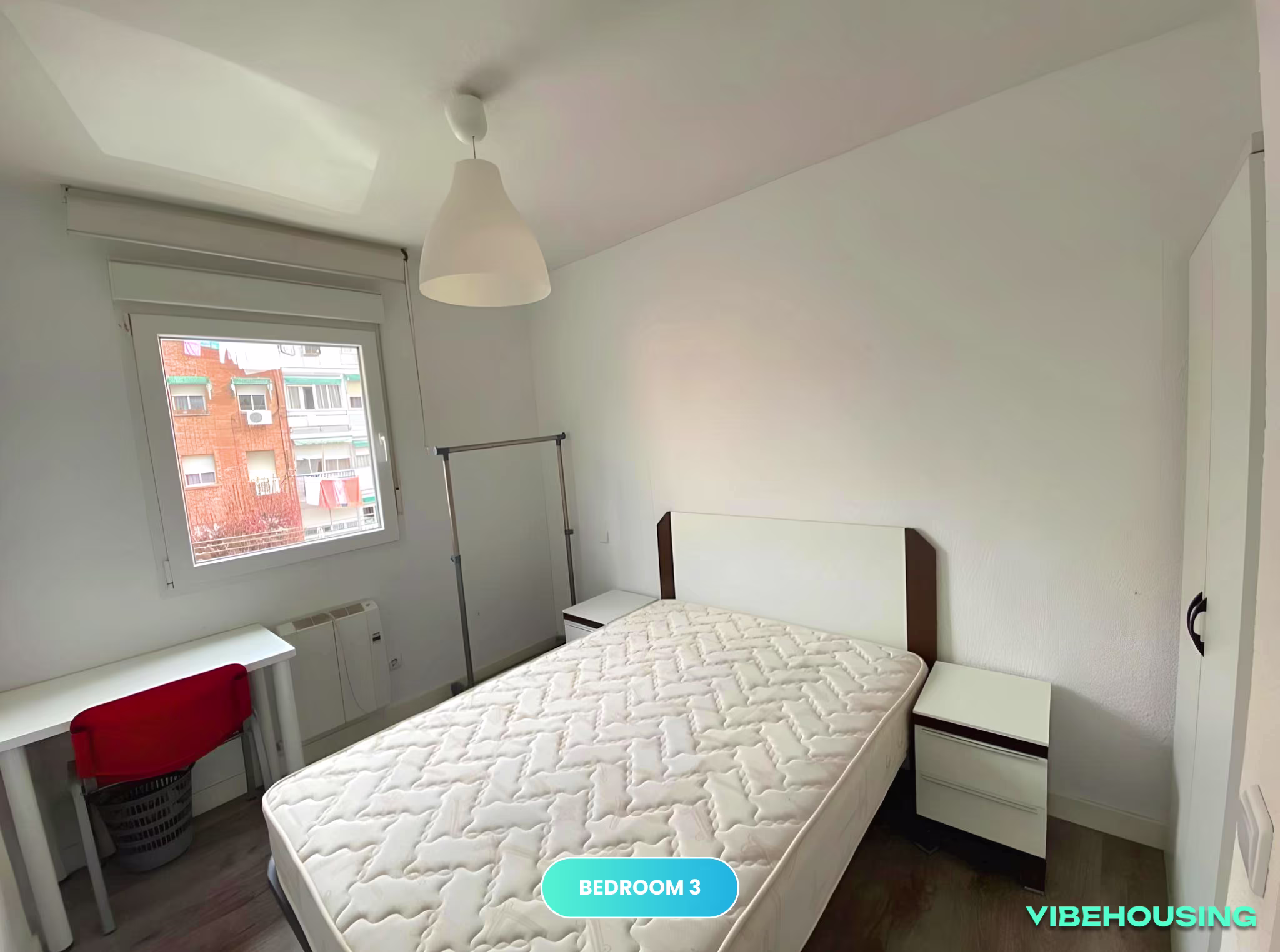 Esta habitación de 10 m² en un apartamento de coliving en Murcia 10, Getafe es perfecta para estudiantes de la UC3M y jóvenes profesionales. Con una cama de 135 cm con somier y una vista exterior, ofrece un ambiente amplio y luminoso. El apartamento incluye WiFi de alta velocidad y servicio de limpieza quincenal, para un entorno siempre limpio. Ubicada cerca de la Universidad Carlos III y con excelente conexión a transporte público, ¡es la opción ideal para quienes buscan comodidad y cercanía en Getafe!