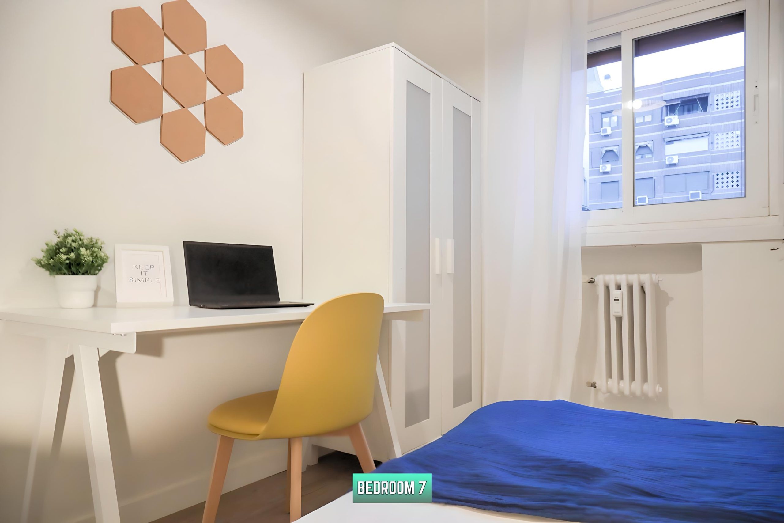 Descubre esta habitación de 7 m² en un apartamento de coliving en Hilarión Eslava, Chamberí, ideal para quienes buscan un espacio compacto y funcional. La habitación cuenta con una cama de 90 cm con somier y una vista interior, que ofrece un ambiente tranquilo y cómodo. El apartamento dispone de WiFi de alta velocidad y servicio de limpieza semanal, para mantener el entorno siempre limpio. Situada en el centro de Chamberí, estarás cerca de transporte público, tiendas y restaurantes, lo que facilita la vida en la ciudad. ¡Una opción práctica y accesible para quienes buscan un espacio bien ubicado en Madrid!