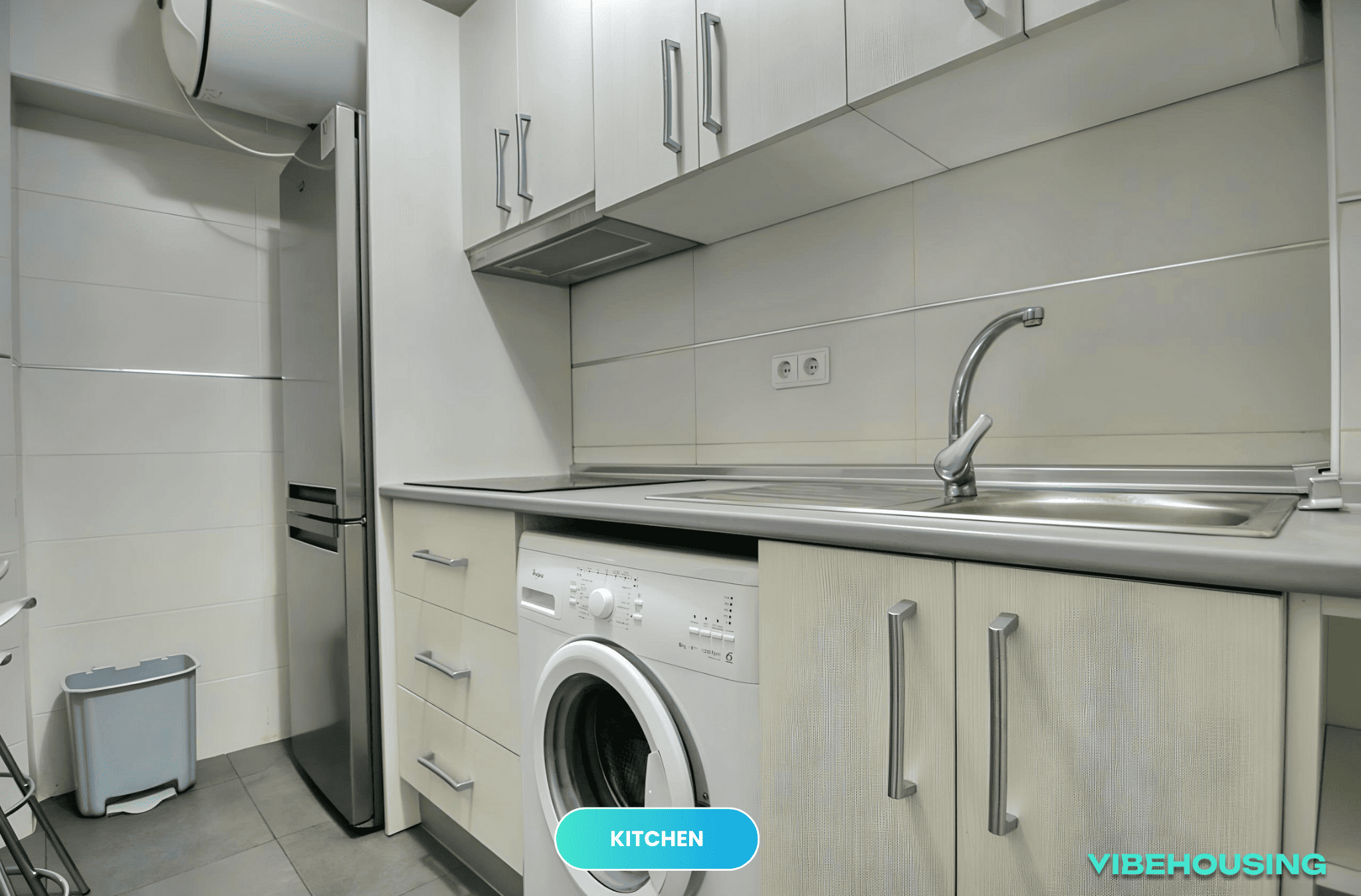 El apartamento cuenta con una cocina completamente equipada, ideal para preparar tus comidas y disfrutar de la vida diaria con tus compañeros de piso. La zona de calle Geranio es tranquila y dispone de supermercados, cafeterías, restaurantes y otros servicios a pocos minutos, para que tengas todo lo que necesitas cerca de casa.